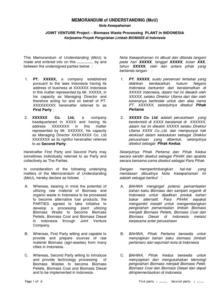 Contoh Surat Perjanjian Bisnis Dalam Bahasa Inggris